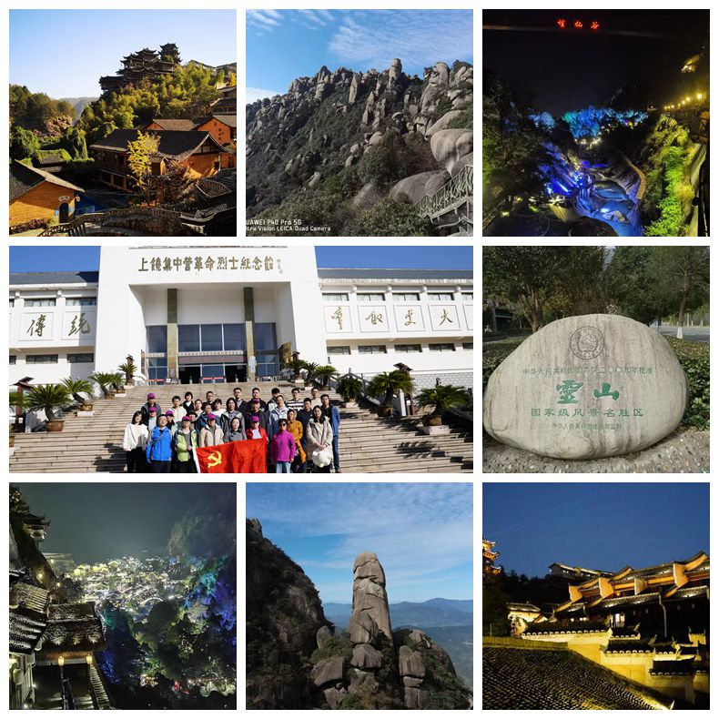 先至网红文旅打卡地、有“活动的清明上河图”之称的望仙谷,白天的望仙谷舒适静逸,仿佛世外桃源,夜晚的望仙谷温馨浪漫、流光溢彩,是一场视觉盛宴;第二日赴“皖南事变”关押叶挻将军等人的上饶集中营,了解历史,缅怀先烈;第三日游览被誉为“睡美人”的灵山,灵山自然环境独特,地质构造复杂,地貌类型多样,是道、佛二教圣地,大家都兴致盎然走完8.5公里全程。